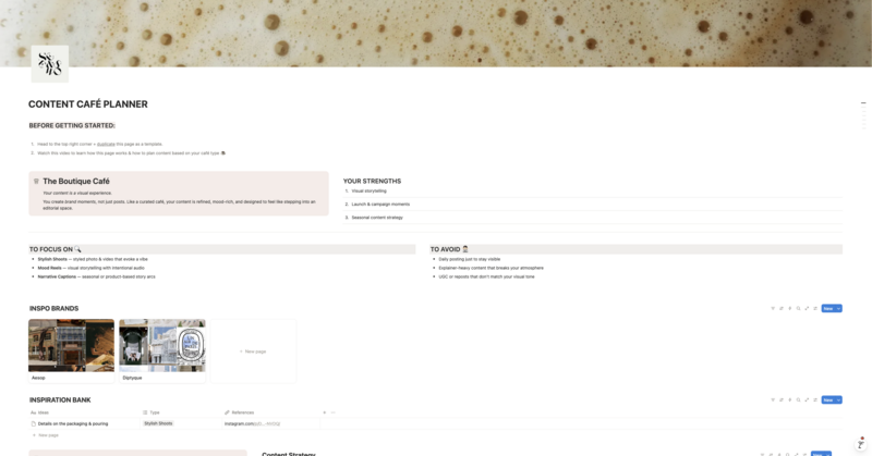 ✅ A list of what content to focus on, and what to stop doing based on your Café Style